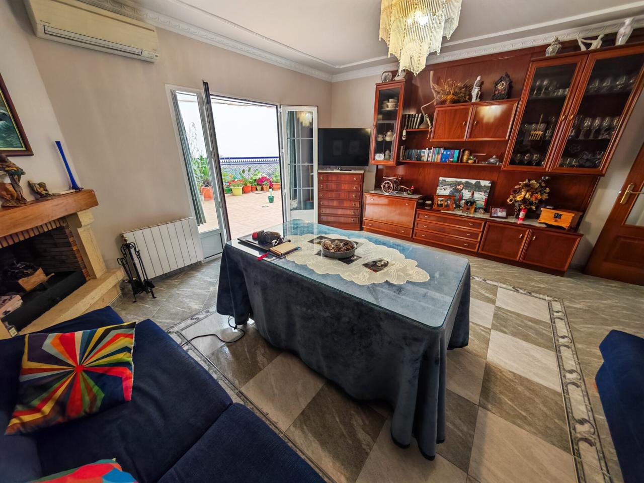 En esta misma planta se encuentra un gran patio exterior, perfecto para disfrutar en familia o con amigos. El salón es amplio, cuenta con chimenea, salida directa al patio y aire acondicionado frío/calor.