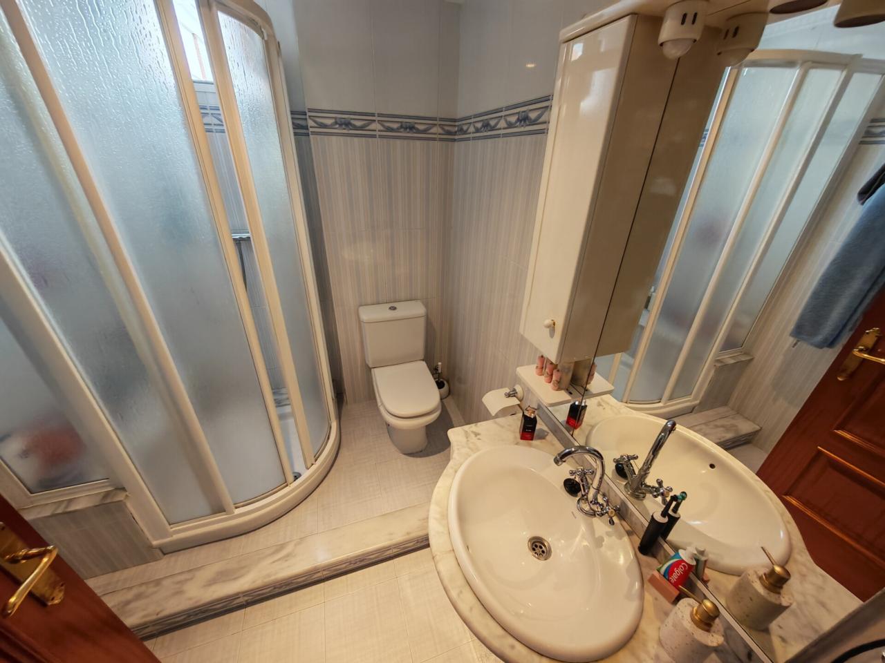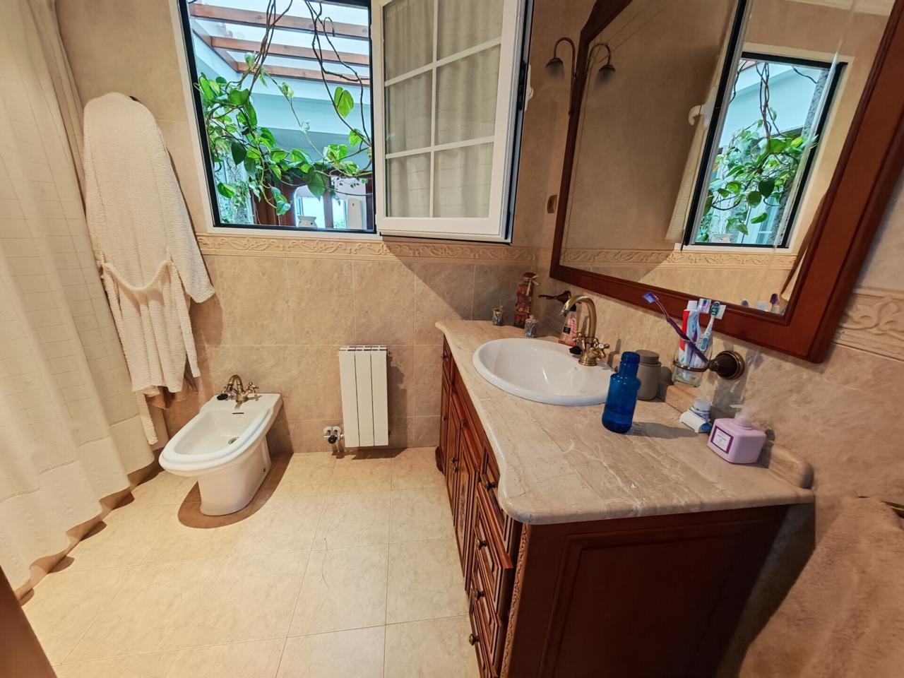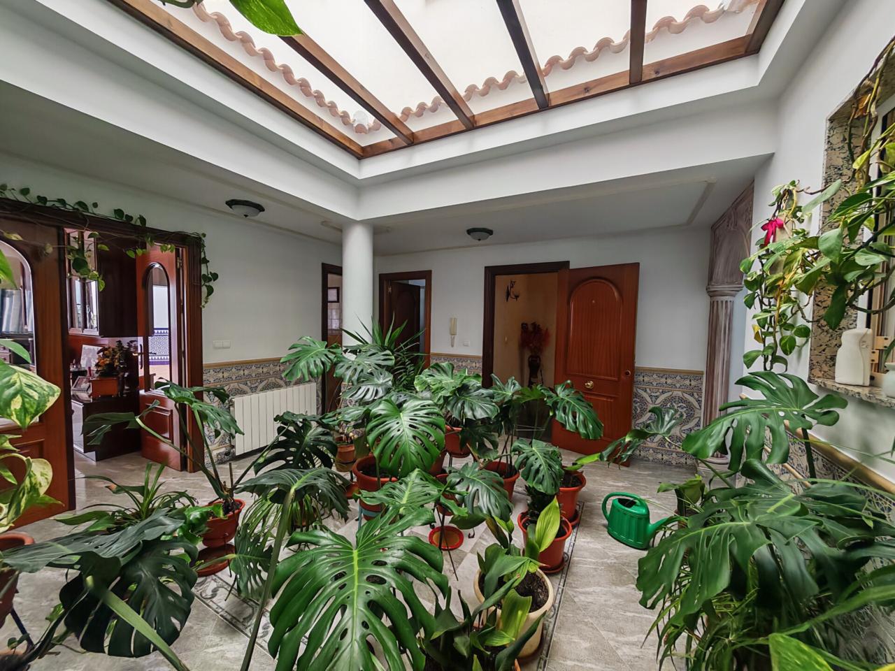 La primera planta constituye la zona principal de la vivienda, diseñada para el día a día con un ambiente cómodo y muy luminoso. Cuenta con cuatro dormitorios , dos de ellos con armarios empotrados, y una habitación adicional que actualmente se utiliza como despacho. La cocina es independiente, fabricada en madera de alta calidad y equipada con horno, vitrocerámica y lavavajillas, además de un práctico lavadero con despensa. Dispone de dos baños completos, uno con bañera y otro con plato de ducha. Uno de los elementos más destacados es el patio interior cubierto con cristal, que aporta abundante luz natural y crea un espacio acogedor y único.