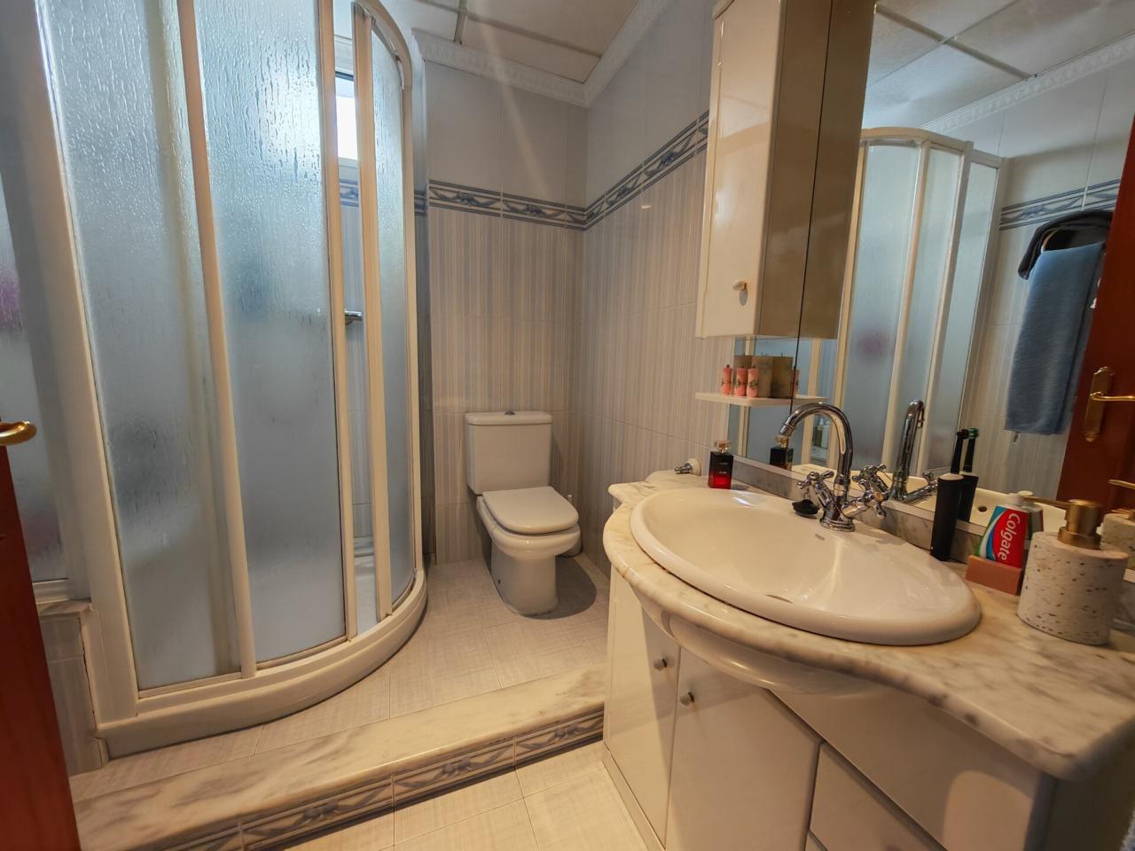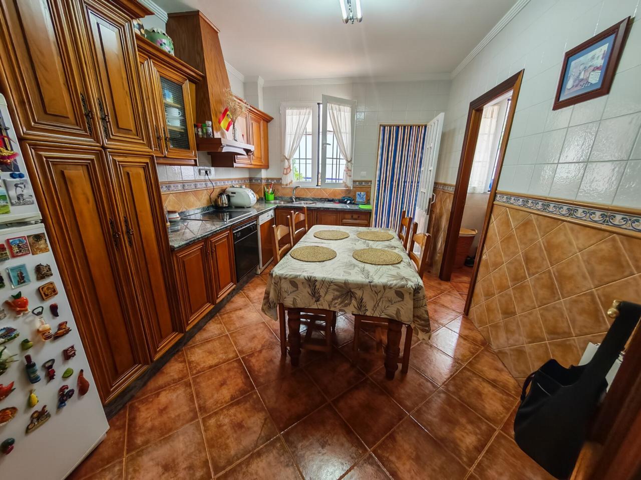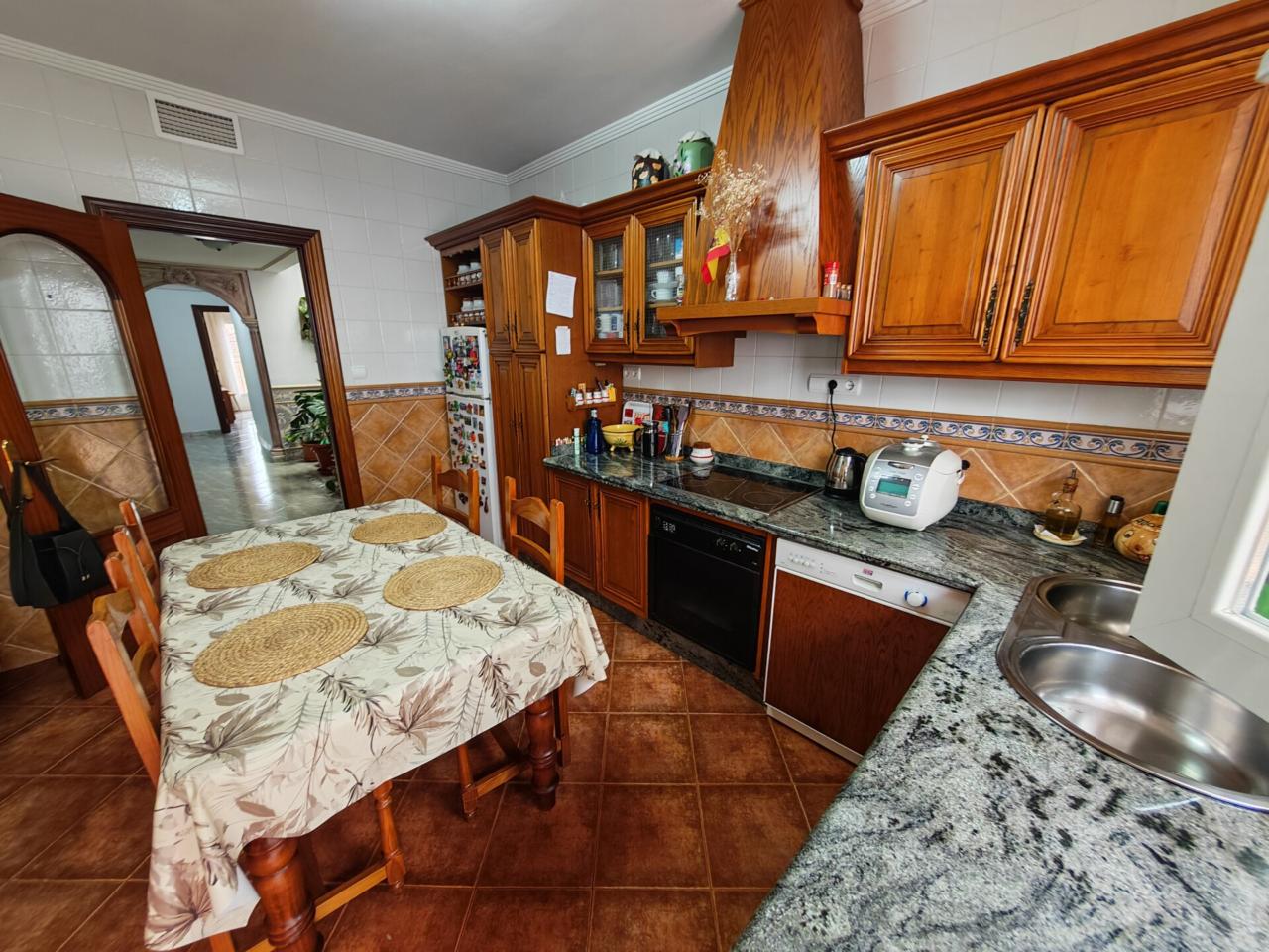 La primera planta constituye la zona principal de la vivienda, diseñada para el día a día con un ambiente cómodo y muy luminoso. Cuenta con cuatro dormitorios , dos de ellos con armarios empotrados, y una habitación adicional que actualmente se utiliza como despacho. La cocina es independiente, fabricada en madera de alta calidad y equipada con horno, vitrocerámica y lavavajillas, además de un práctico lavadero con despensa. Dispone de dos baños completos, uno con bañera y otro con plato de ducha. Uno de los elementos más destacados es el patio interior cubierto con cristal, que aporta abundante luz natural y crea un espacio acogedor y único.