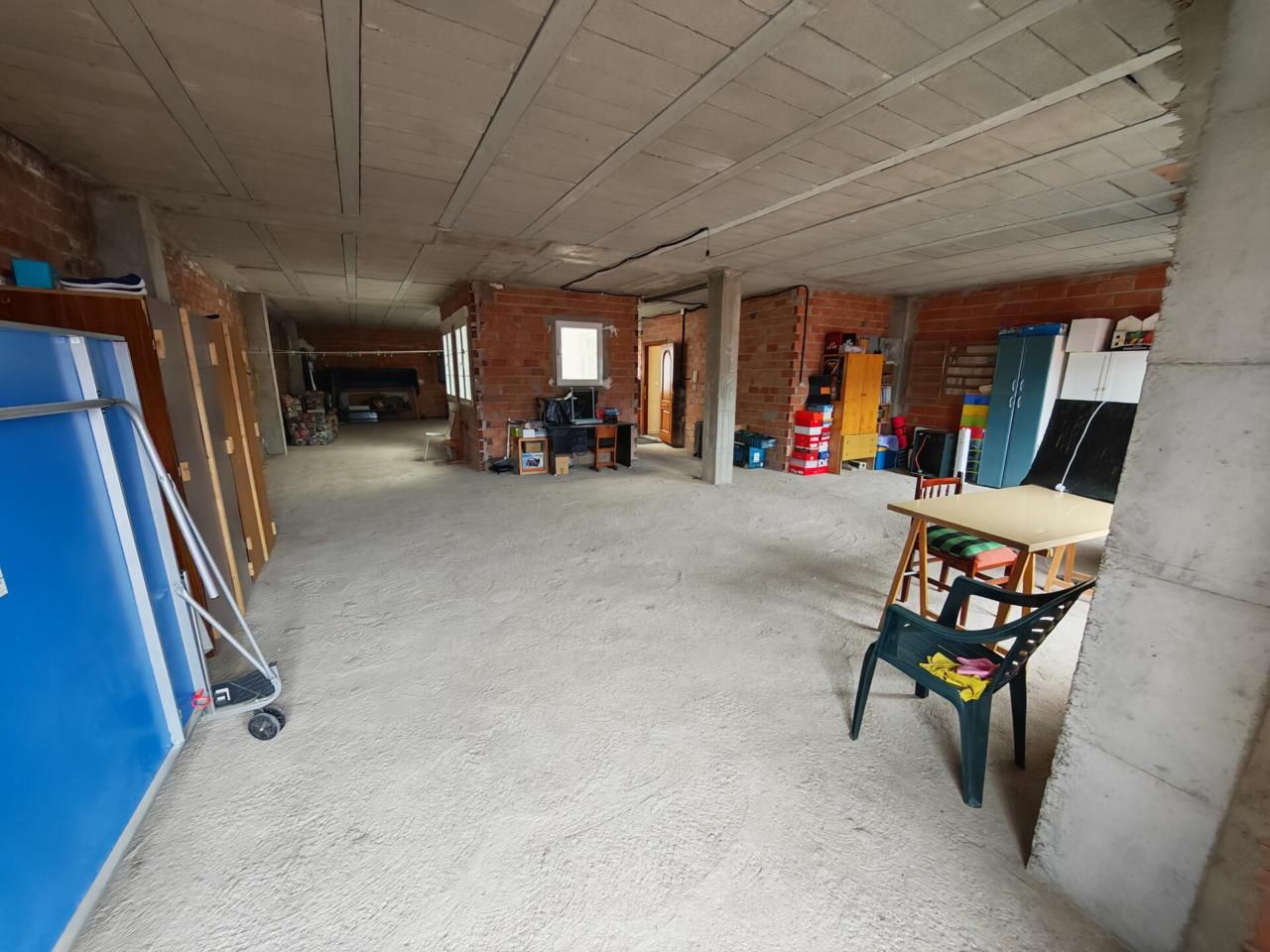 En la planta baja, con más de 200 m², encontramos un espacio funcional y lleno de posibilidades. Dispone de una cochera de grandes dimensiones con capacidad para varios vehículos (hasta 8 coches) y portón automático, una zona con chimenea ideal para reuniones o momentos de ocio, un aseo y un depósito de gasóleo para la calefacción central. Además, la altura de los techos, que oscila entre los 3,5 y 4 metros, aporta una gran sensación de amplitud y abre la puerta a múltiples usos.