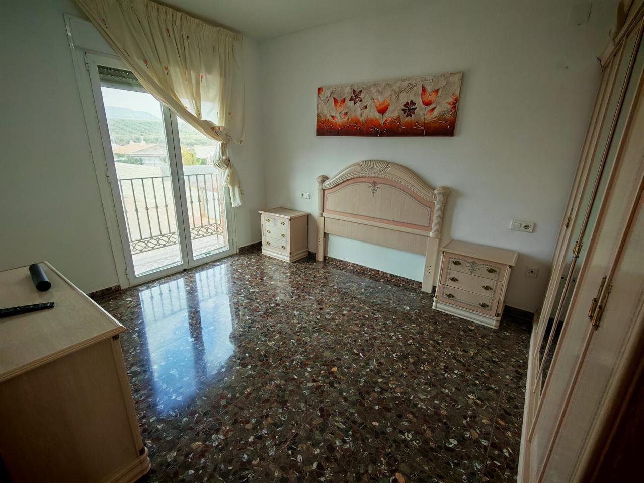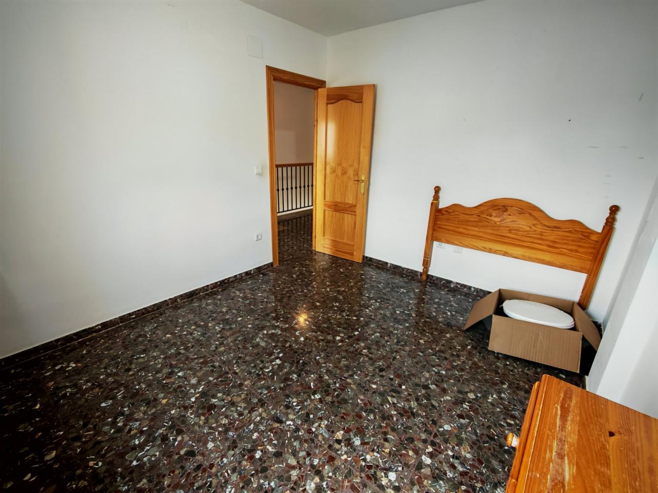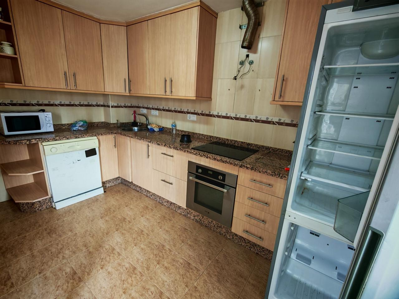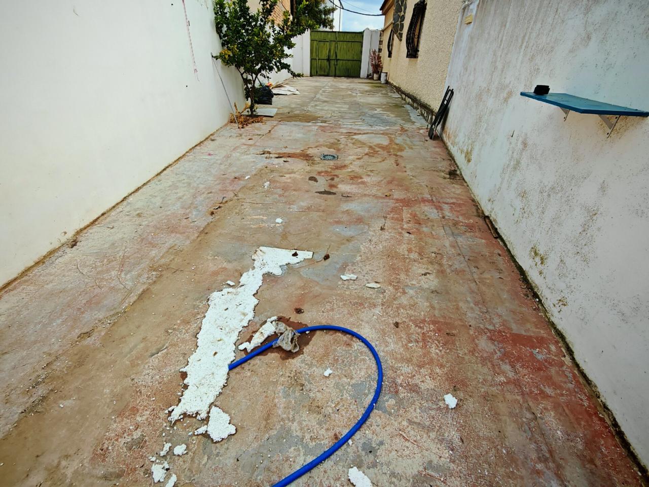Ya en cuanto a la vivienda accedemos por porche delantero con terraza en la entrada, pasamos a recibidor con puerta separando el salon que cuenta con aire acondicionado y ventana frontal y con unas muy buenas dimensiones, junto al salon tenemos un baño completo con plato de ducha para la planta baja, puerta de acceso al semisotano y una amplia cocina amueblada y con encimera de granito y salida a lavadero que nos da acceso tambien a terraza y gran patio trasero que se prolonga hasta la carretera principal con porton de acceso.