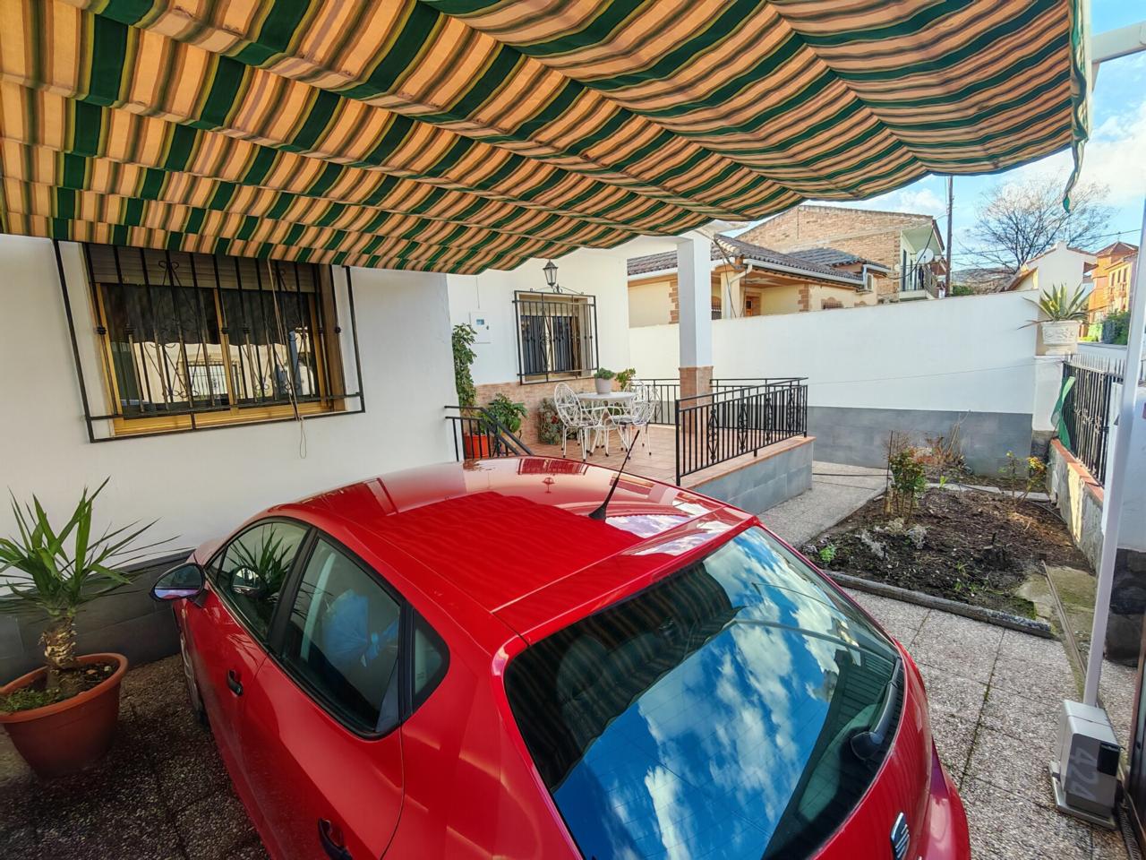 Otro de los puntos fuertes de esta propiedad es su garaje con portón automático a pie de calle y toldo para resguardar al vehículo, zona de jardin delantero que hace que la casa este con un espacio libre delante con terraza y porche que hace que tenga mas privacidad.