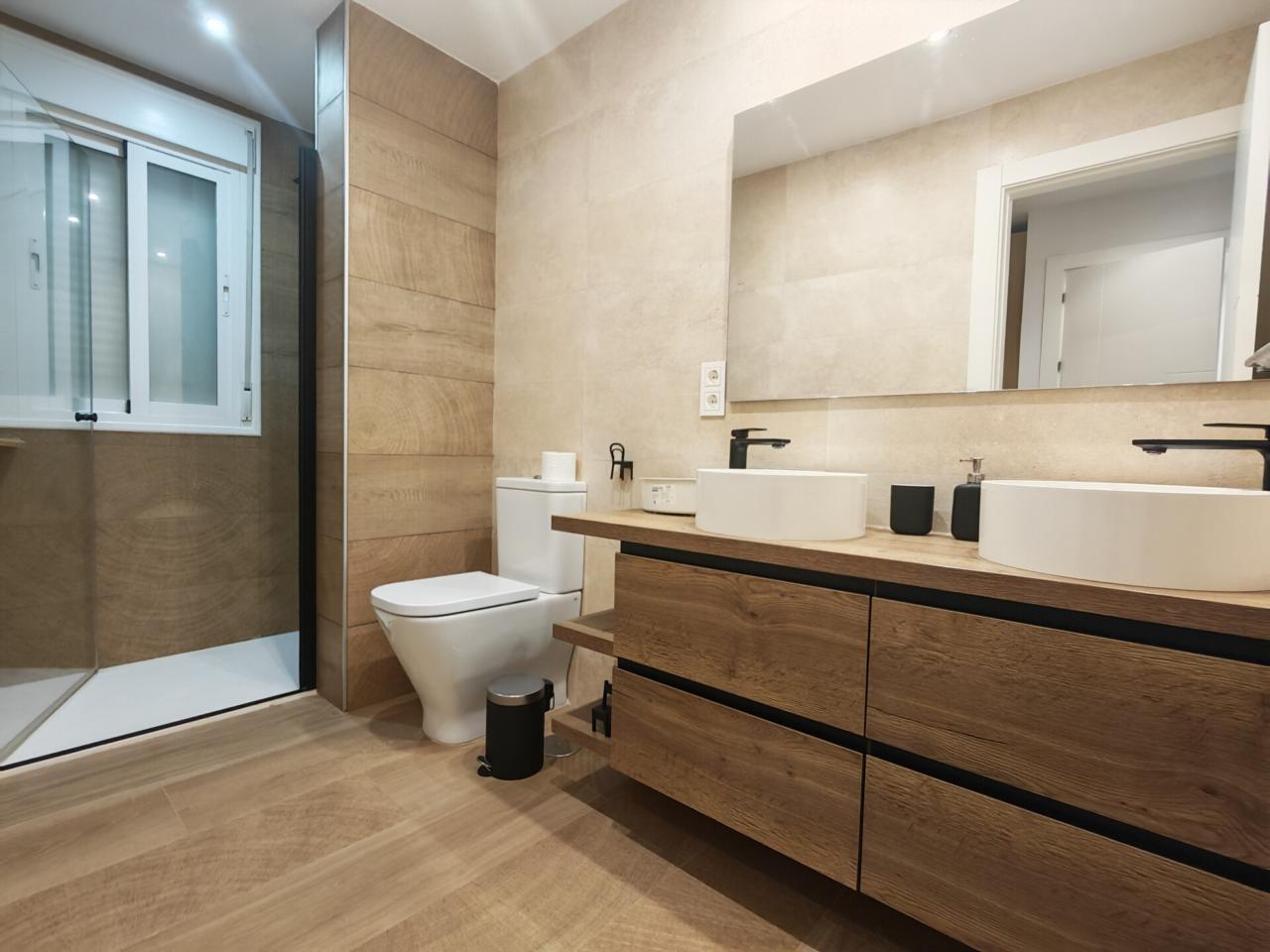 Además, la vivienda cuenta con un segundo baño completo equipado con plato ducha mampara y mueble moderno de baño.