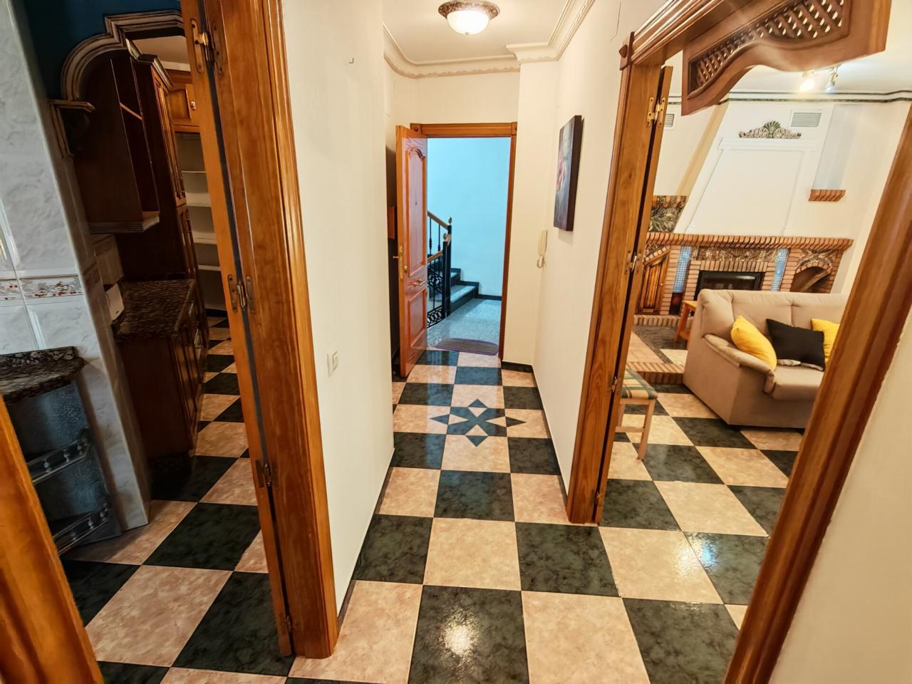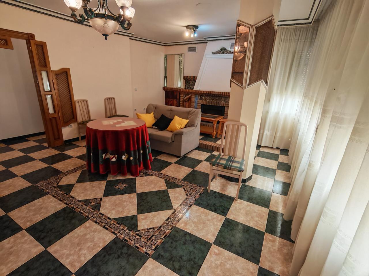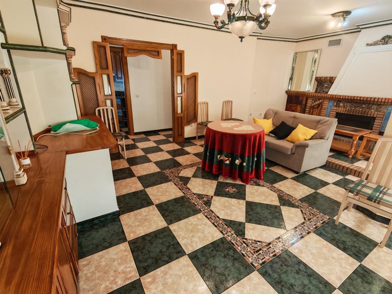 Al entrar tenemos un amplio salon con chimenea de obra y muchas ventanas por las que entra luz natural, ideal para crear un espacio tranquilo y familiar. Una cocina que destaca por su gran capacidad para almacenaje y además por contar con una despensa propia, además tiene acceso directo a un patio privado donde también se encuentra la zona de lavadero.