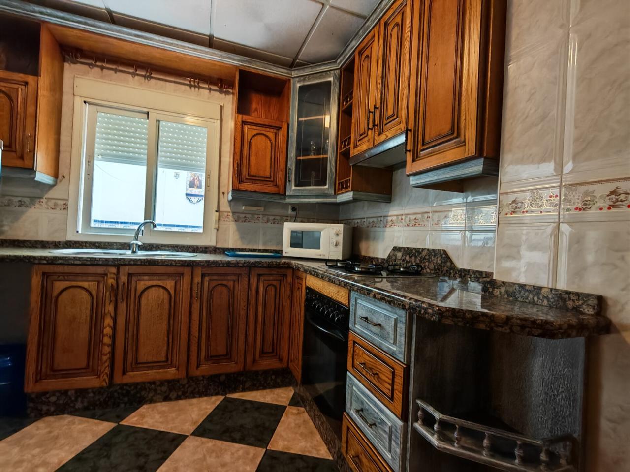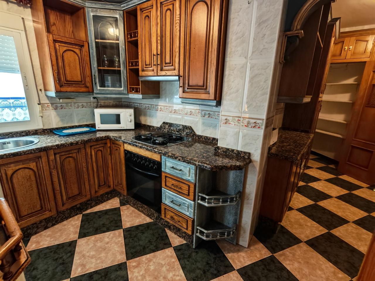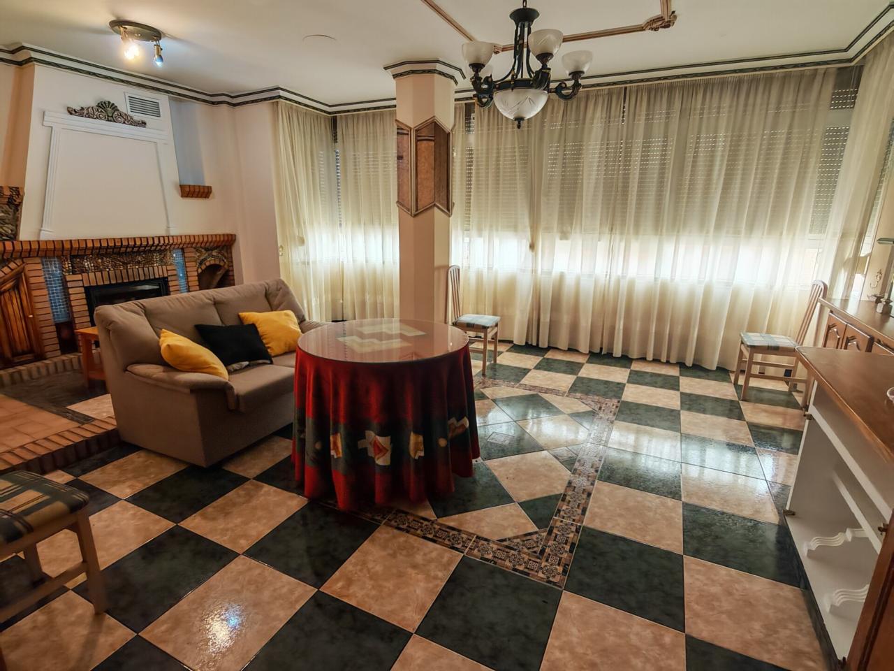 Al entrar tenemos un amplio salon con chimenea de obra y muchas ventanas por las que entra luz natural, ideal para crear un espacio tranquilo y familiar. Una cocina que destaca por su gran capacidad para almacenaje y además por contar con una despensa propia, además tiene acceso directo a un patio privado donde también se encuentra la zona de lavadero.